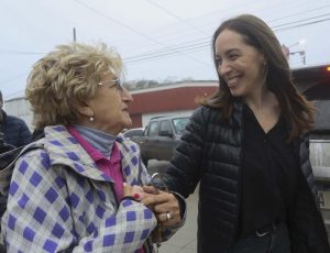 Con Mauricio Macri en Sudáfrica, donde participa de la cumbre de los BRICS; la gobernadora
