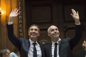 El jefe de Gobierno porteño, Horacio Rodríguez Larreta, junto al vicejefe Diego Santilli, juro para