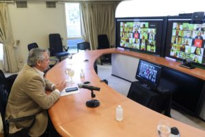 El presidente Alberto Fernández mantuvo desde la residencia de Olivos una videoconferencia con miembros del