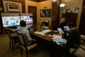 El gobernador de la provincia de Buenos Aires, Axel Kicillof, mantuvo encuentros vía teleconferencia con