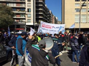 Los trabajadores de LATAM se movilizaron hasta la embajada de Chile para protestar por la