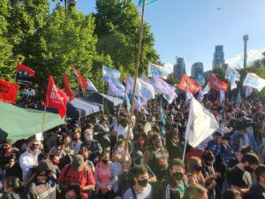 El dirigente social Juan Grabois y militantes del campo popular se manifestaron frente al predio