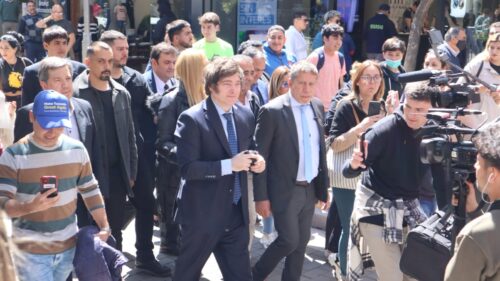 Javier Milei recorrió hoy la peatonal del centro de la ciudad de San Miguel de