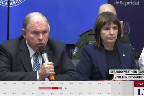 Patricia Bullrich, ministra de Seguridad de la Nación, y Gerardo Werthein, titular de Cancillería, recibieron