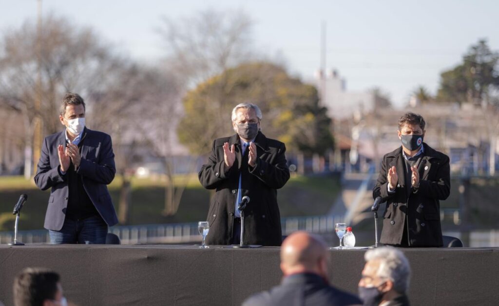 El Presidente estuvo acompañado por el ministro del Interior, Eduardo de Pedro; el gobernador de la provincia de Buenos Aires, Axel Kicillof; el presidente de la Cámara de Diputados, Sergio Massa, y la diputada nacional Liliana Schwindt, autora del proyecto de ampliación del RZF, y, por videoconferencia, la directora Ejecutiva de la ANSES, Fernanda Raverta, acompañada por la precandidata a diputada nacional, Victoria Tolosa Paz.