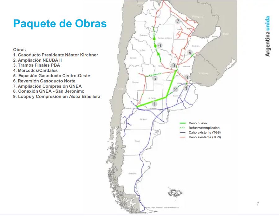 La primera etapa del proyecto, para la cual el Presidente ya instruyó a la Secretaría de Energía y a IEASA para que avancen con el llamado a licitación pública, implica obras entre Tratayen y Salliqueló, lo mismo que entre Mercedes y Cardales, además de la ampliación del Gasoducto NEUBA II (Ordoqui), la construcción de los tramos finales en AMBA Sur y Norte, la reversión del Gasoducto Norte en sus etapas I y II, y la ampliación del Gasoducto Centro Oeste.