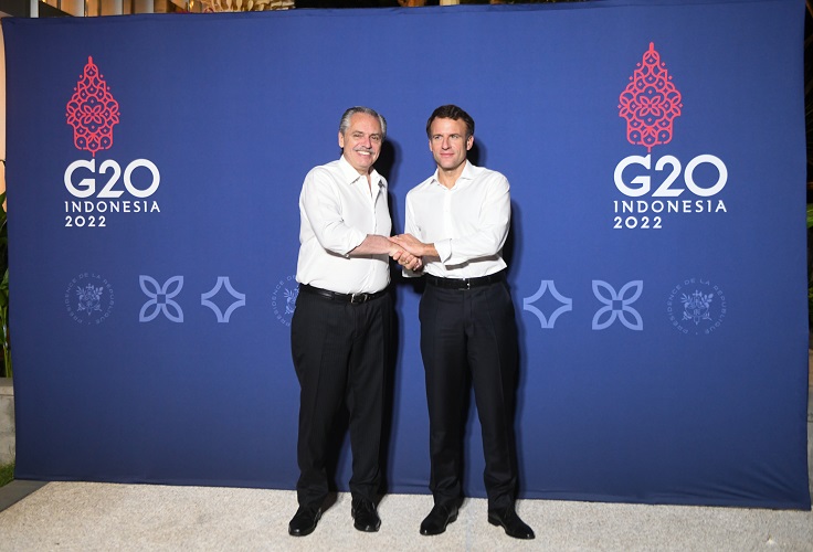 El presidente ya está en la isla de Bali, para participar de la Cumbre de Jefes de Estado y de Gobierno de los principales países del mundo. La primera actividad fue una cena organizada por Emmanuel Macron.