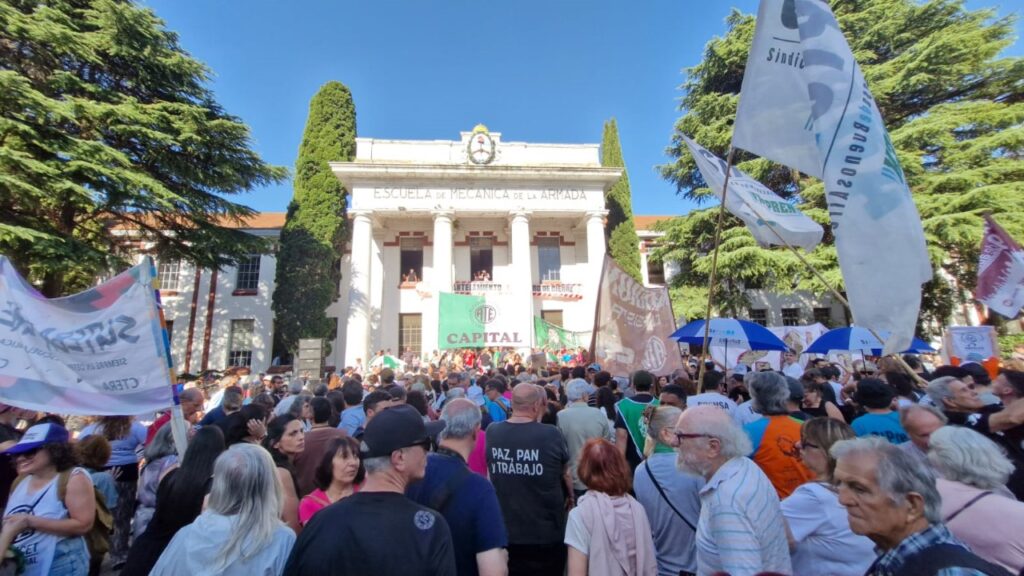 La Asociación Trabajadores del Estado (ATE) se movilizó a la ex ESMA, predio donde también funciona la Secretaría de Derechos Humanos, en protesta por los despidos en el sector y el desmantelamiento de las políticas de derechos humanos durante la gestión de Javier Milei.