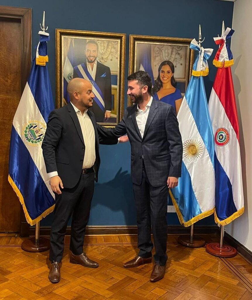 El diputado liberal de la provincia de Buenos Aires, Nahuel Sotelo, se reunió con el embajador de El Salvador, Eduardo Cardozo Mata, en la embajada que el país tiene en Buenos Aires.