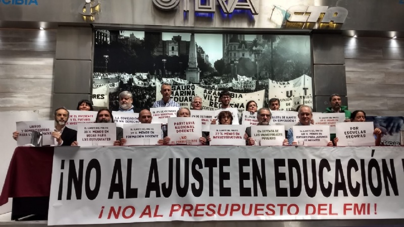 Los gremios docentes anunciaron en conferencia de prensa que realizarán mañana, día en el que el Congreso trata el Presupuesto 2019, un paro nacional en “contra del ajuste en el Presupuesto educativo impuesto a la medida de los mandatos del FMI”.
