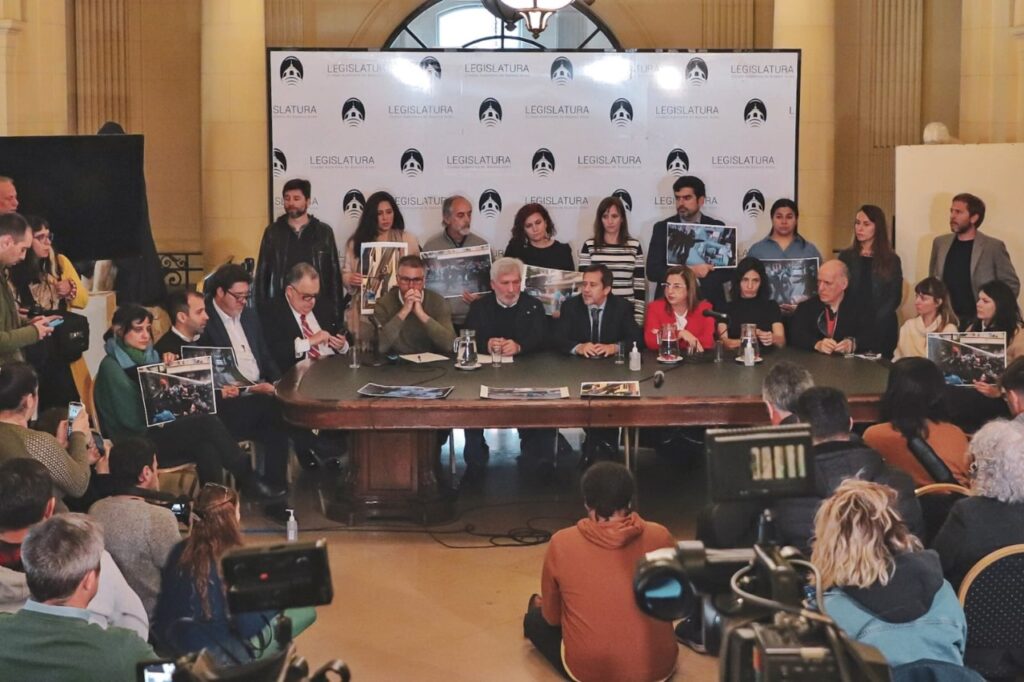 En la conferencia también participó el diputado nacional Eduardo Valdés, quien informó que, junto a sus compañeros de bancada Leopoldo Moreau y Rodolfo Tailhade, presentaron una denuncia por «violación a la ley de inteligencia» en la que se incurrió el sábado, cuando desde balcones cercanos, e incluso desde el edificio donde reside de la Vicepresidenta, «al menos cuatro personas, tanto vestidas de civil como con uniforme, filmaban a los manifestantes».