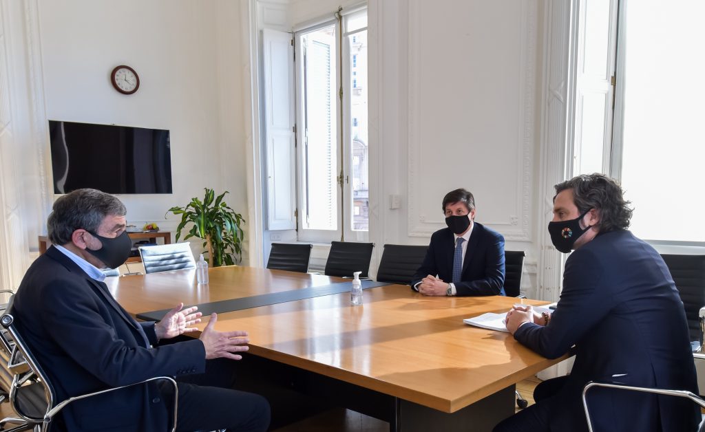 El jefe de Gabinete de Ministros de la Nación, Santiago Cafiero recibió en la Casa Rosada al Ministro de Ciencia, Tecnología e Innovación, Roberto Salvarezza y al Presidente de la Agencia Nacional de Promoción de la Investigación, el Desarrollo Tecnológico y la Innovación, Fernando Peirano, con quienes analizó la importancia de las acciones que se llevarán a cabo a partir de los 745 millones de pesos que el Gobierno Nacional destinará a los laboratorios de ciencia y tecnología de todo el país y para escalar proyectos de I+D, tras varios años de falta de inversión en el sector.