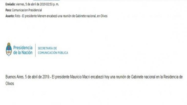 El error generó burlas en las redes sociales y trató de ser «subsanado» con otro correo electrónico en el que se pudo leer que Macri fue quien realmente encabezó el cónclave con su equipo de trabajo en la residencia presidencial.