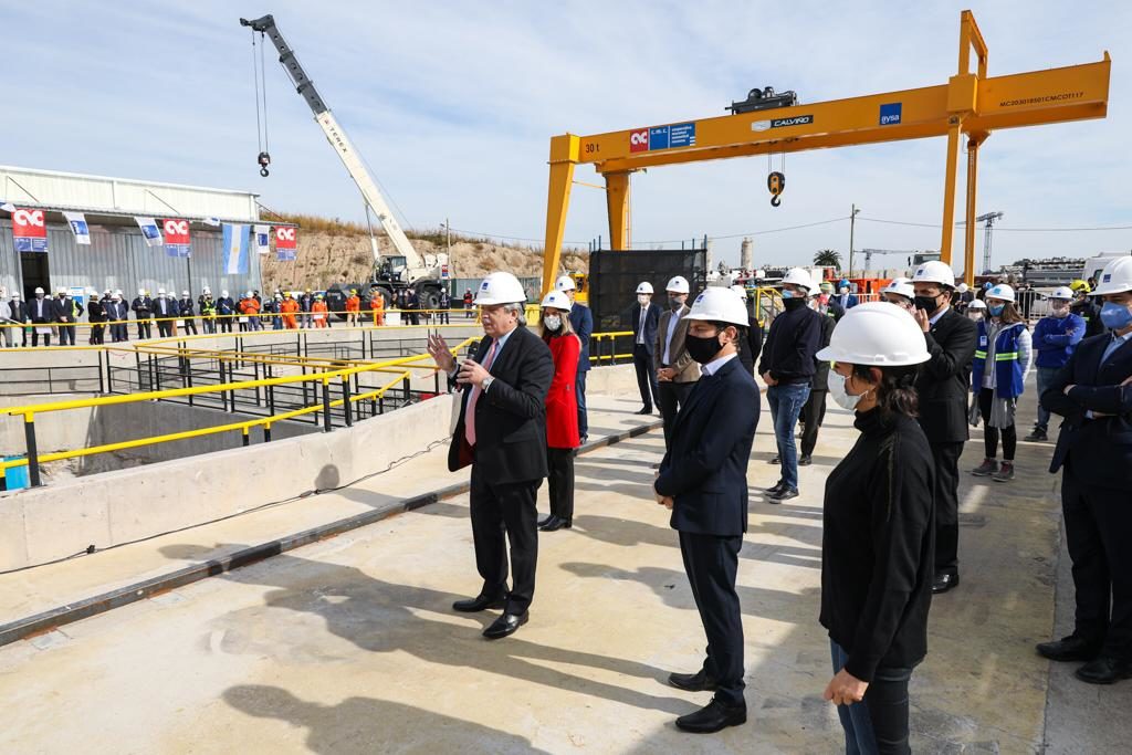 El presidente Alberto Fernández encabezó esta mañana, en el partido bonaerense de Quilmes, el acto de bajada de una tunelera de AySA, que contribuirá a aumentar la capacidad de producción, transporte y distribución de agua potable a cinco municipios de la zona sur del Gran Buenos Aires, y que beneficiará a 2.500.000 habitantes.