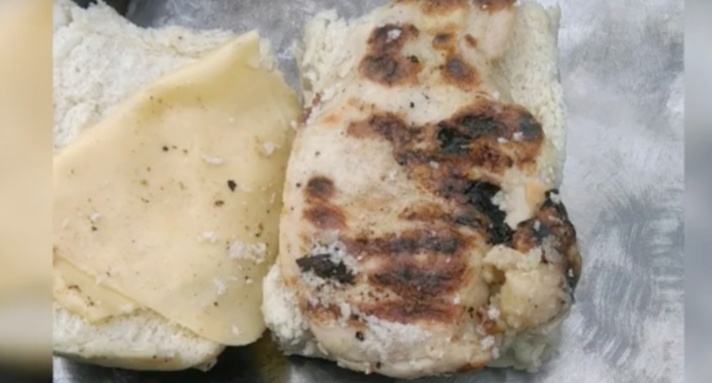 “Hoy le dieron a mi hijo un sandwich de pechuga de pollo con queso y tiene un olor que te descompone”, relata el padre del chico en un audio que acompañó con la foto del sandwich y compartió a través de WhatsApp.