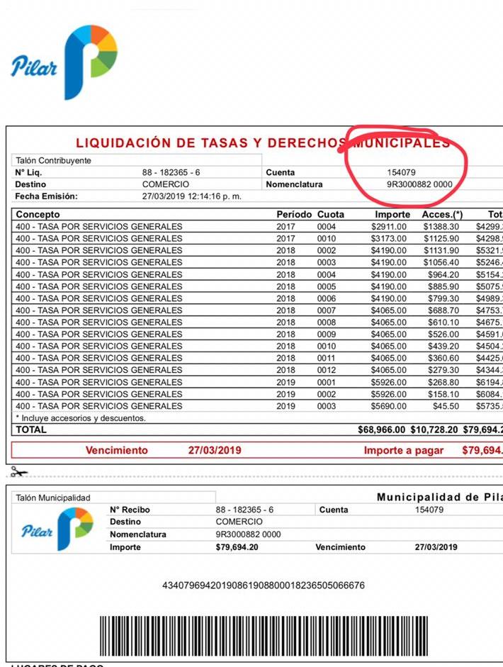 Según documentación a la que accedió este medio, el local (identificado fiscalmente con el número 154079) de más de 700 metros cuadrados cubiertos y cerca de 1000 metros en total, le debe a ARBA 370 mil pesos; mientras que a la municipalidad de Pilar le adeuda 79 mil pesos; por tasas y derechos municipales que no se pagan desde el triunfo de Cambiemos en las elecciones de medio término.