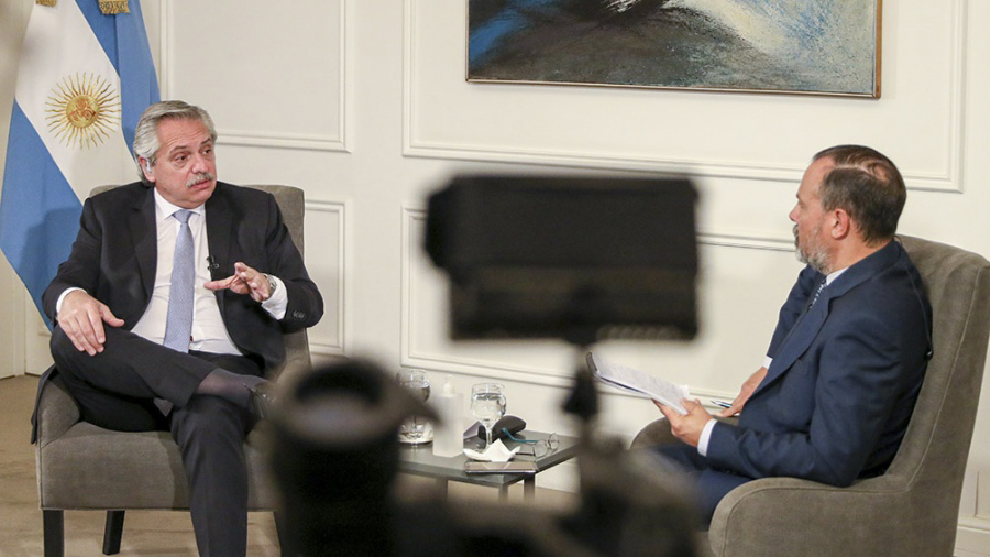 En varios tramos de la entrevista el Presidente cargó contra la oposición, recordando que su antecesor Mauricio Macri tenía una “mesa judicial que presionaba jueces”, algo que es “absolutamente contradictorio con la República”. También criticó los dichos de Federico Pinedo quien planteó que “es totalmente normal que un gobierno vaya a ver a un juez para advertirle el daño que puede hacer con su fallo”. “Hoy no existe ni mesa judicial ni presión del gobierno sobre la justicia, ese era el sistema macrista”, aseguró.