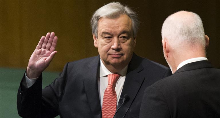 El portugués  Antonio Guterres había jurado el 12 de diciembre pero asumió recién como nuevo secretario general. «Hagamos de la paz nuestra prioridad, nuestro objetivo y nuestra guía» sostuvo Guterres en su primer mensaje luego de jurar.
