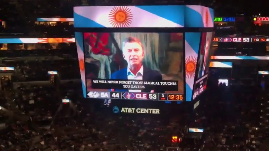 «A mi me gusta pensar para adelante, pienso en el leagado que nos dejas. Sos un embajador, llevas nuestra bandera en alto», decía Macri en las pantallas del AT&T Center, mientras los silbidos llegaron los Estados Unidos.