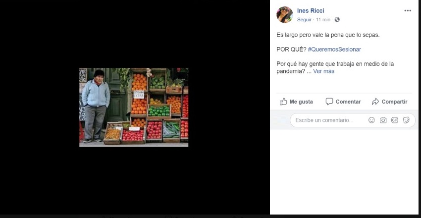En una publicación que realizó en su cuenta de Facebook, la edil reclamó que el HCD vuelva a sesionar en medio de la pandemia -pedido que realiza la coalición opositora en el distrito- y subió una serie de fotos de ciudadanos “trabajando”.