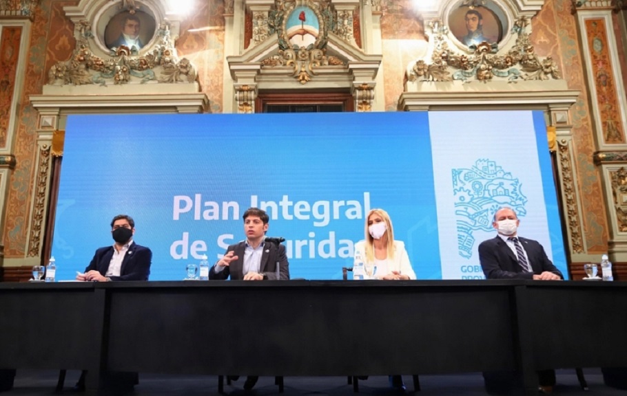 Poco antes del mediodía de este jueves el Gobernador bonaerense Axel Kicillof presentó el Plan Integral de Seguridad para la provincia, programa que incluye el reclamado aumento salarial para los efectivos de la Policía Bonaerense. El aumento promedio llevará el sueldo mínimo de bolsillo de 39.5000 a 44 mil pesos, manteniendo la proporción para el resto del escalafón policial. Durante el anuncio, el mandatario pidió que se terminen con las protestas de la fuerza.