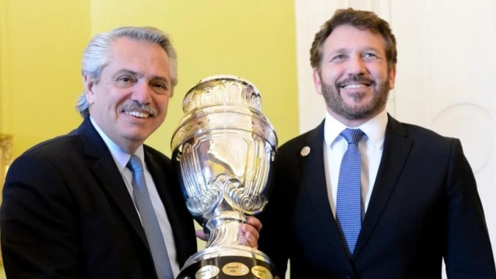 «Nos reunimos ayer con el presidente de la Conmebol, Alejandro Domínguez, y fue una buena reunión. La Argentina tiene un compromiso para organizar parte de la Copa y el año pasado se postergó y este año había que hacerla. Lo que plantemos fueron protocolos muy estrictos, de alta y permanente fiscalización», explicó Cafiero, en declaraciones radiales.