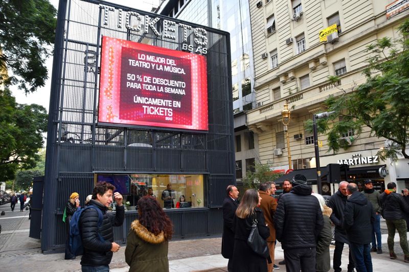 El jefe de Gobierno porteño, Horacio Rodríguez Larreta, inauguró hoy la nueva cabina de Tickets BA ubicada en Diagonal Roque Sáenz Peña y Cerrito en el barrio de San Nicolás, el único espacio de la Ciudad que ofrece entradas a mitad de precio para ver los espectáculos teatrales y musicales más importantes del circuito oficial y de algunos espacios independientes; similar a la que funciona en Times Square, en Nueva York.