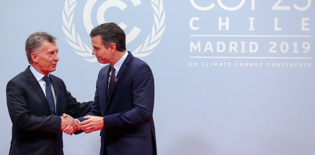 En su último viaje internacional como presidente argentino, Mauricio Macri voló hacia Madrid para participar de la XXV Conferencia de Naciones Unidas sobre el Cambio Climático, que se prolongará hasta el 13 de diciembre y que en esta ocasión cuenta con la titularidad de Chile y el respaldo del Gobierno español.