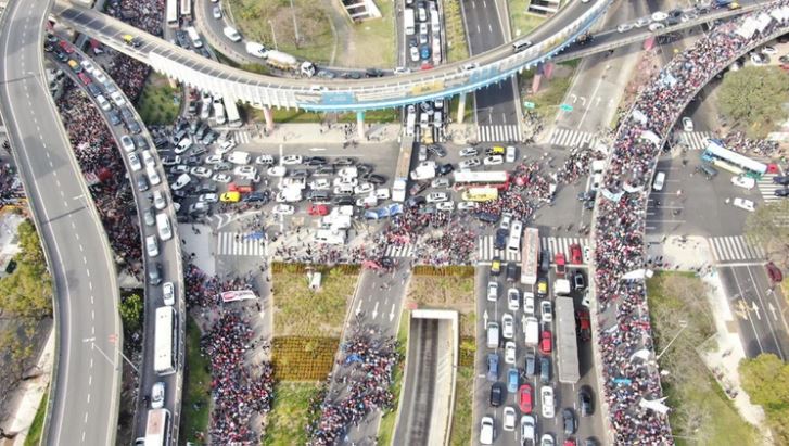 Una parte de las columnas sorteó el gran operativo policial en el Puente Pueyrredón subiendo a la autopista 25 de mayo y marchando de contramano por la Autopista 25 de mayo, por lo que el acceso estuvo cortando algunas horas. Miles de manifestantes concentran hacia Desarrollo Social por otras calles del centro porteño, que a partir de las 11 de la mañana estuvo muy difícil de transitar para los automovilistas.