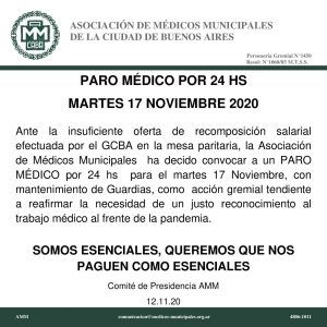 En la Ciudad de Buenos Aires, los médicos municipales convocaron a un paro para el próximo martes 17 y por 24 horas «ante la insuficiencia» en la oferta de recomposición salarial que recibieron y se incrementan los cuestionamientos hacia la administración Horacio Rodríguez Larreta, acusada de cerrar «una paritaria» en negro.