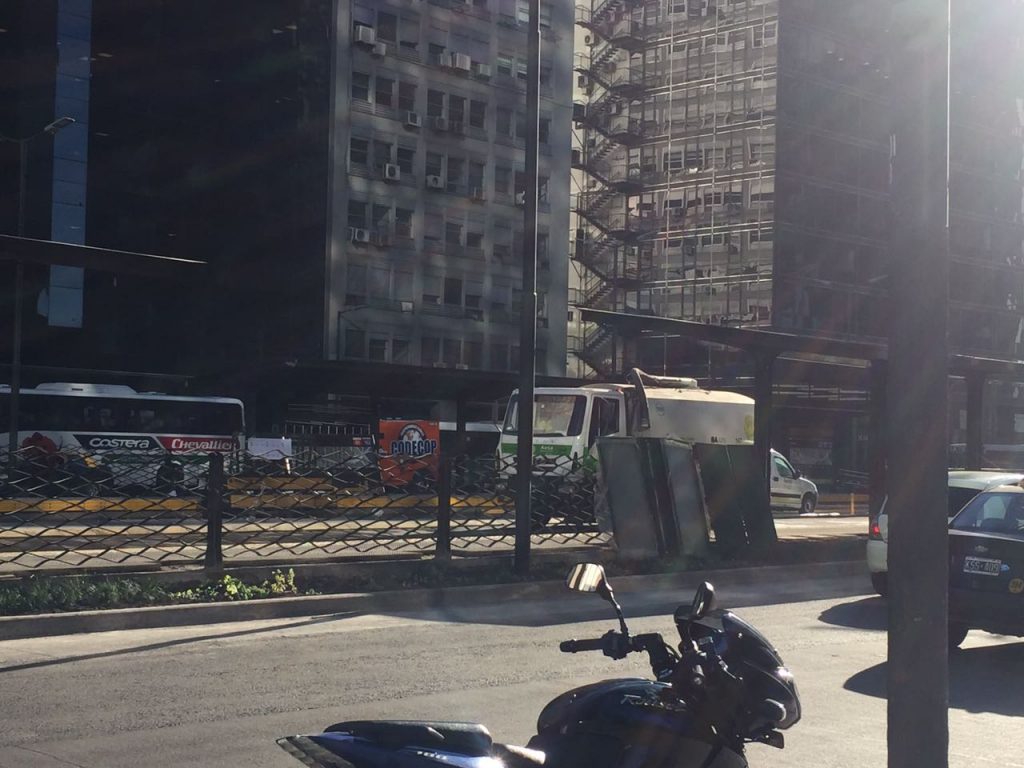Una vez que los funcionarios se retiraron del acto entraron en escena trabajadores para retomar tareas y los colectivos comenzaron a circular horas después.