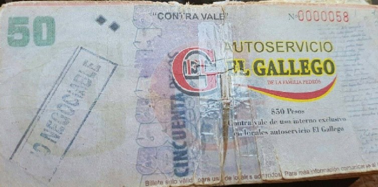 Un diputado provincial del PAyS, Martín Sereno, señala que esta práctica es habitual entre “los grandes contratistas que tienen mercados y despensas, o sea por un lado le sacan la ganancia del trabajo del empleado y por otro lado obtienen ganancias porque están obligados a consumir en su mercado”. Además, añadió que “casi todos los salarios están bancarizados y estos tipos se dan el lujo de emitir un papel moneda trucho”.