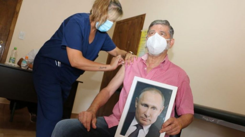 «El alcalde de la ciudad argentina, Roque Pérez, acudió por la vacunación contra el coronavirus con un retrato de Vladimir Putin. Juan Carlos Gasparini dijo que Argentina está agradecida con Putin por proporcionar la vacuna rusa y salvar vidas de argentinos. ¡Rusia siempre ayudará! ¡Sigan saludables!», escribió el mandatario ruso en sus redes sociales.