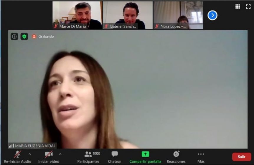 La ex gobernadora María Eugenia Vidal volvió a compartir un zoom con militantes y dirigentes de Juntos por el Cambio. En dicho espacio virtual realizado este sábado, aprovechó para pedir «una refundación» del espacio político opositor, afirmó que no hay terceras fuerzas y tuvo algunos guiños para el Frente de Todos.